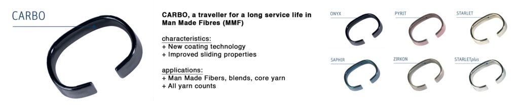 Among these finishing options, Carbo holds a unique position in the Bräcker product. While other finishes are designed for general spinning conditions, Carbo is specifically optimized for environments where friction control and durability are particularly important. This makes it especially suitable for spinning man-made fibres (MMF) such as polyester and viscose.
